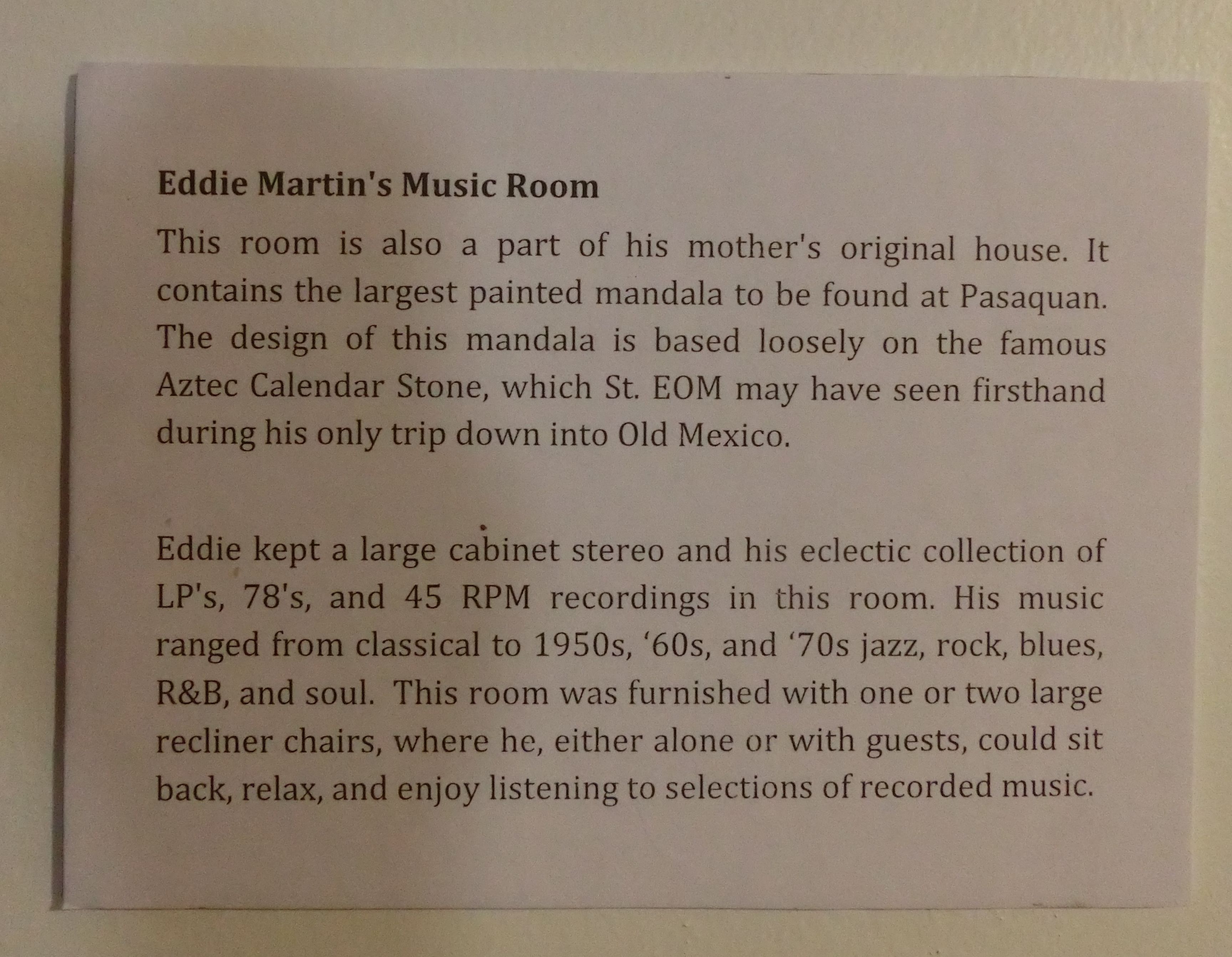 Founded by a man named St. EOM (nee Eddie Owens Martin), the psychedelic collection of buildings collectively known as Pasaquan was created at the behest of three beings from the future who came to the artist during a vision.