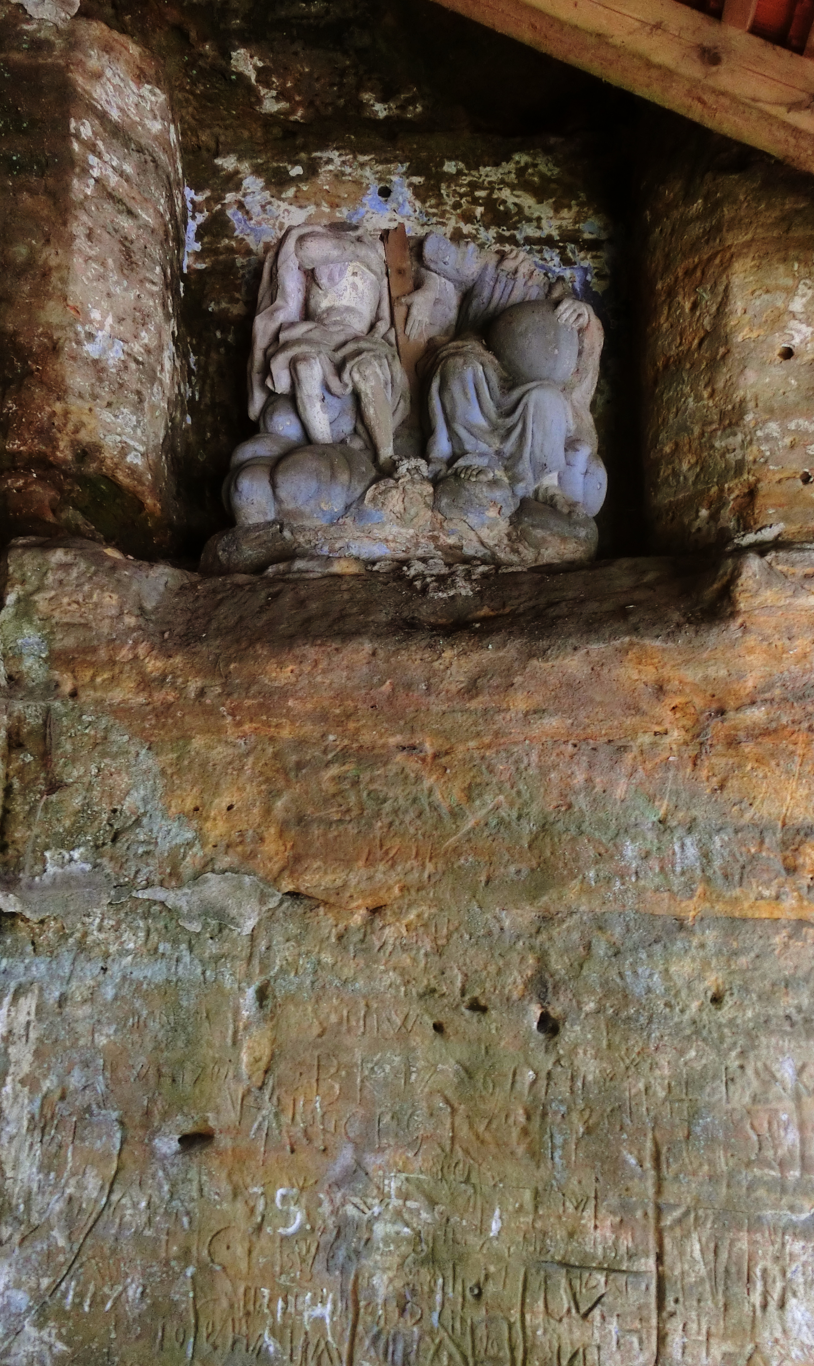 The God's Grave Chapel is located about 400 m east of Velenice (Wellnitz) on the road to Brniště (Brins). In the years 1710-1711 it included the sculptural decoration with statues and reliefs of the folk artist and economist Schille of the Velenice farm no. 2 carved in a sandstone rock. Originally intended as a replacement for a church built in Velenice in 1735, it later became a popular place of pilgrimage.