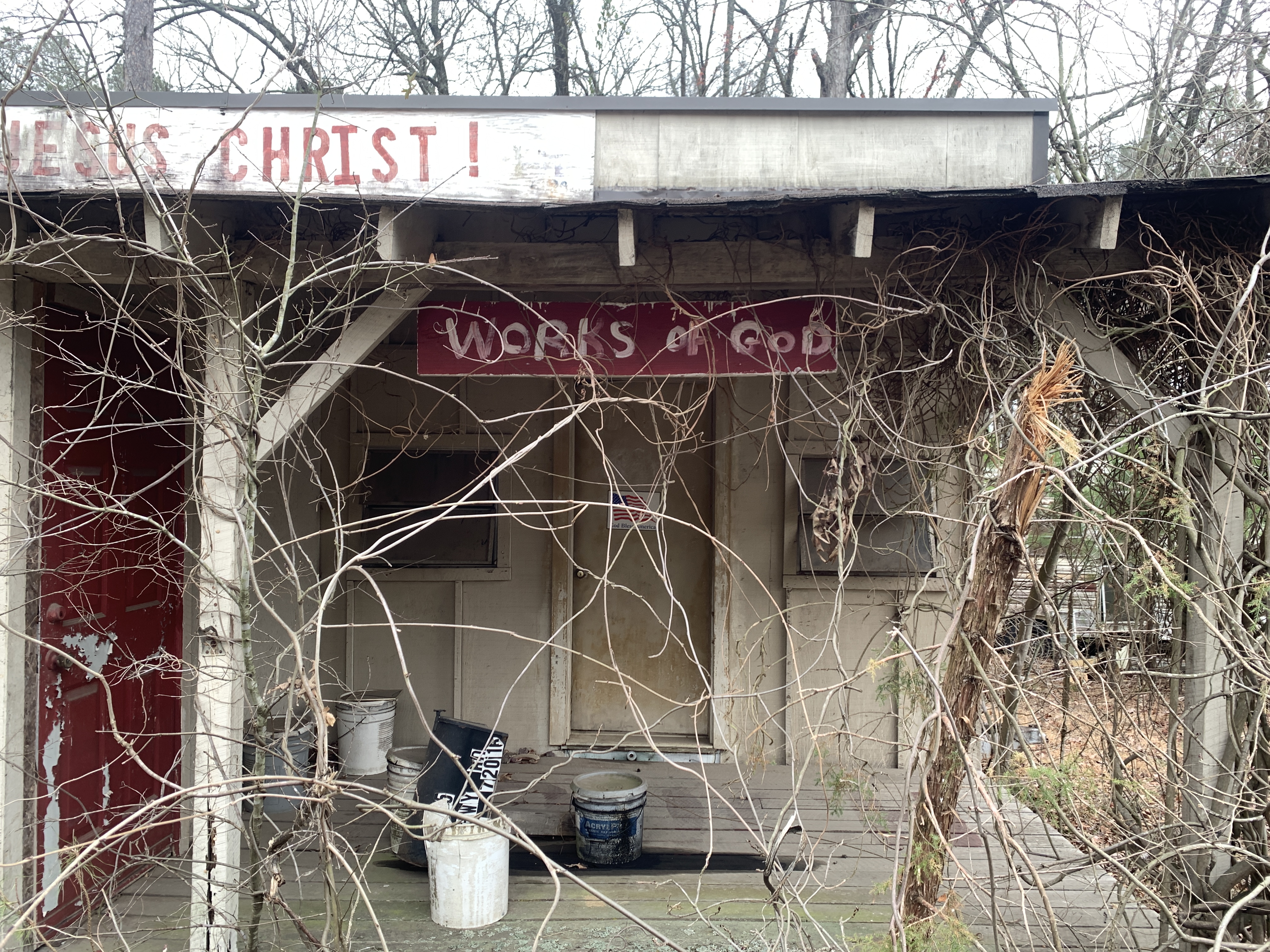 Checking in on one of my favorite weird places in Arkansas. The abandoned fAITH Church/Trailer.