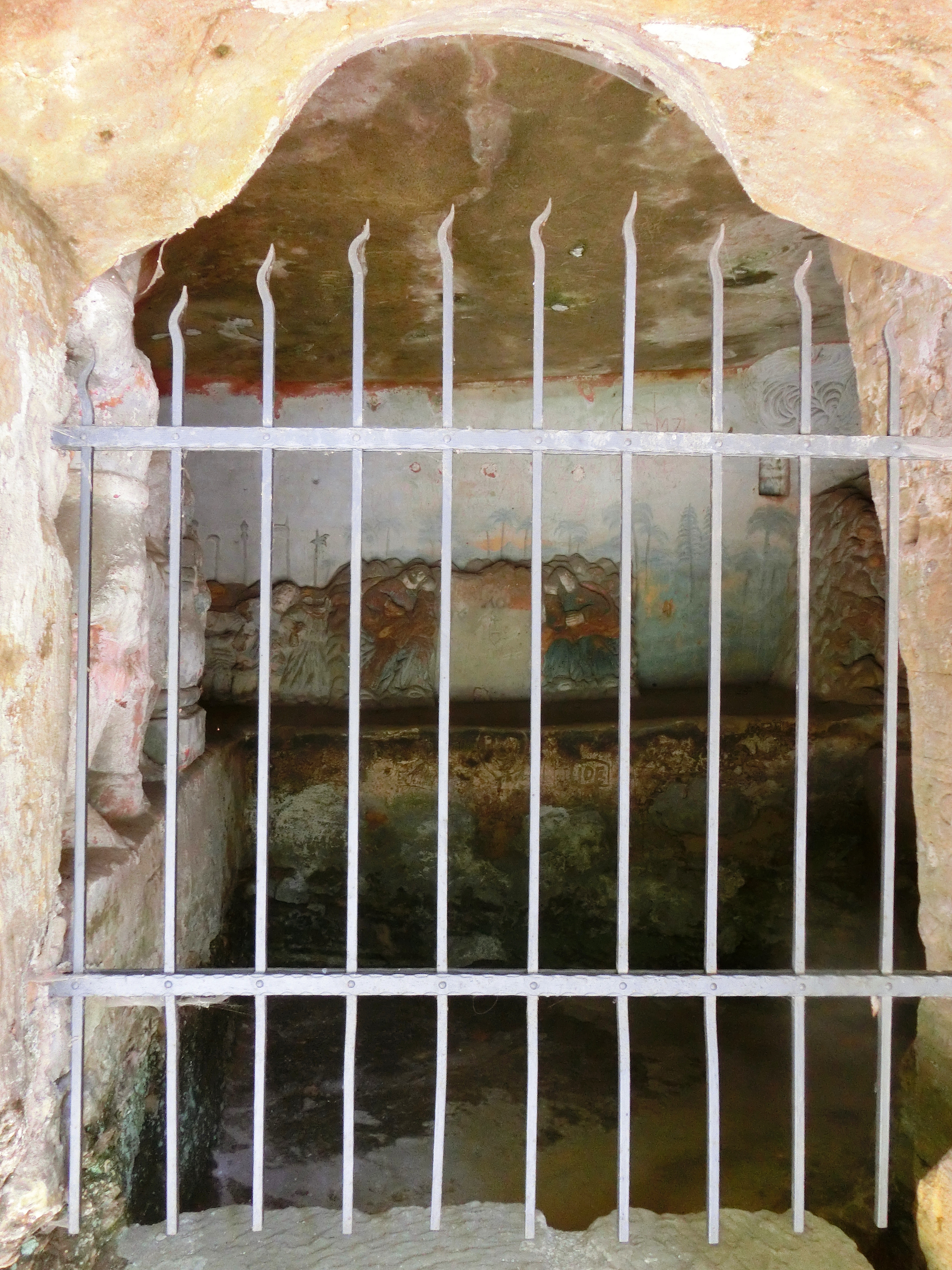 The interior of this elongated chapel is divided into three smaller rooms. The access leads into the middle room through a wide entrance portal to which originally led some spilled in the road construction stages. Directly opposite the entrance is an altar with a niche for the body of Christ, which was carried over in a procession from the Velenice church at Easter. In the adjoining rooms, illuminated by two windows, there are folk relief paintings from the Passion Cycle with remnants of a painterly decoration still visible today. Some of the pictures illustrate the last moments of Jesus Christ's life, from his prayers on the Mount of Olives to his crucifixion on Golgotha.