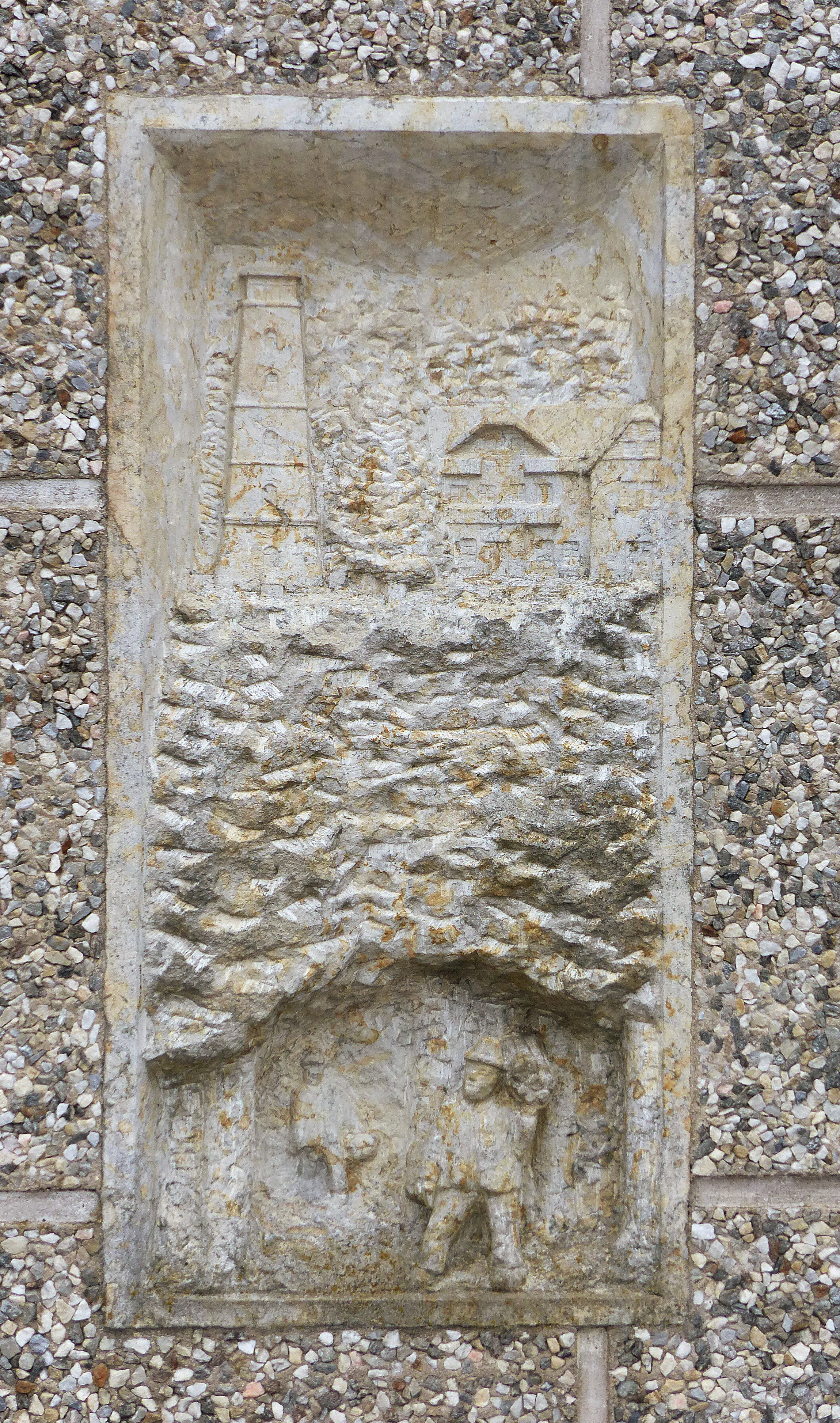 I discovered this place over 10 years ago and finally found time to visit it again and take a few pictures. The house is covered in paving slabs and mosaics. Also a for this region traditional Christmas pyramid made of sandstone, including figures, a large miner at the top of the roof, and many more details.