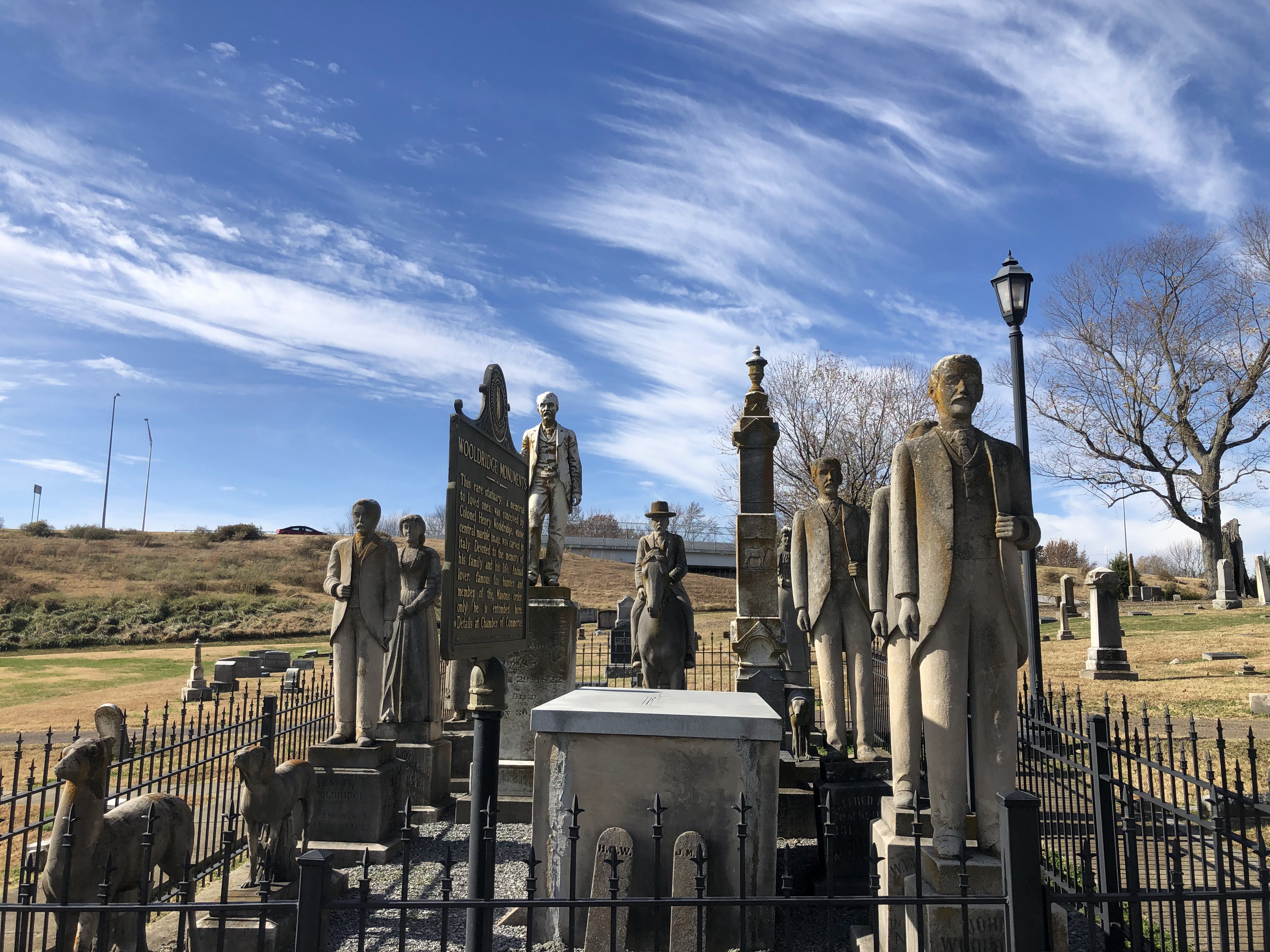 The Wooldridge Monuments are a series of historical monuments located in Maplewood Cemetery of Mayfield, Kentucky. They were built for Colonel Henry G. Wooldridge, to commemorate family members and other loved ones of his life, from 1892 until Wooldridge's death on May 30, 1899. Wooldridge is the only one buried at the site. The lot has been called "The Strange Procession Which Never Moves".