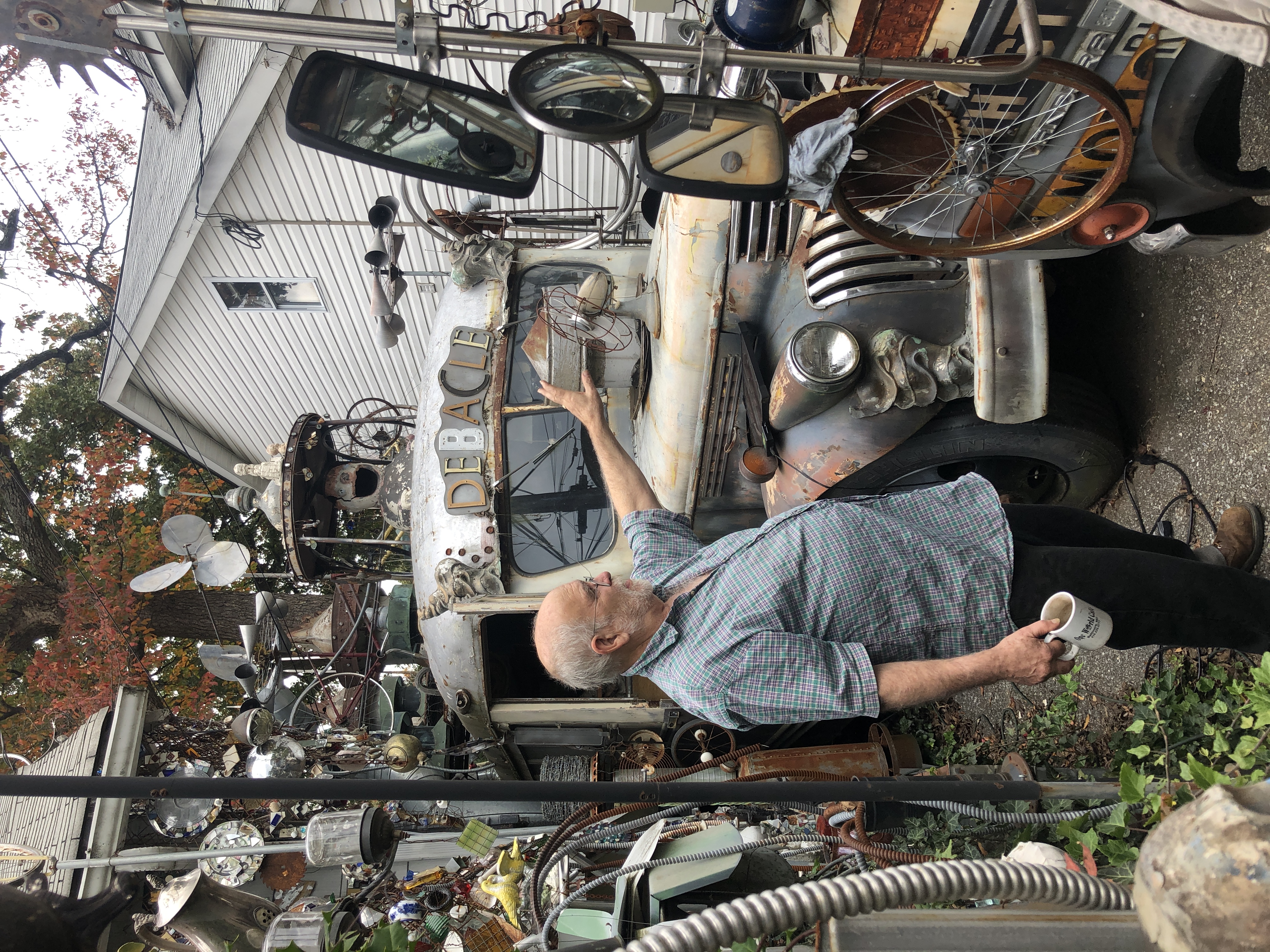 Clarke Bedford’s named his art car and house “Vanadu” to honor the poetry of Samuel Taylor Coleridge, whose famous “Kubla Khan” poem emerged from an opium-induced dream about the ancient Chinese city of Xanadu, once under the rule of Mongol emperor Kublai Khan. In addition to “Vanadu,” Bedford also calls his assemblage of recycled materials the Assemblage Cottage, pronounced with a French accent as “As-sem-blage Co-ttage.”"